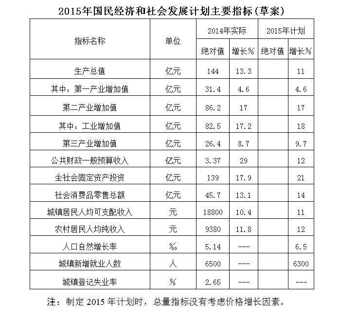 2015年國民經(jīng)濟(jì)和社會發(fā)展計(jì)劃主要指標(biāo)(草案)